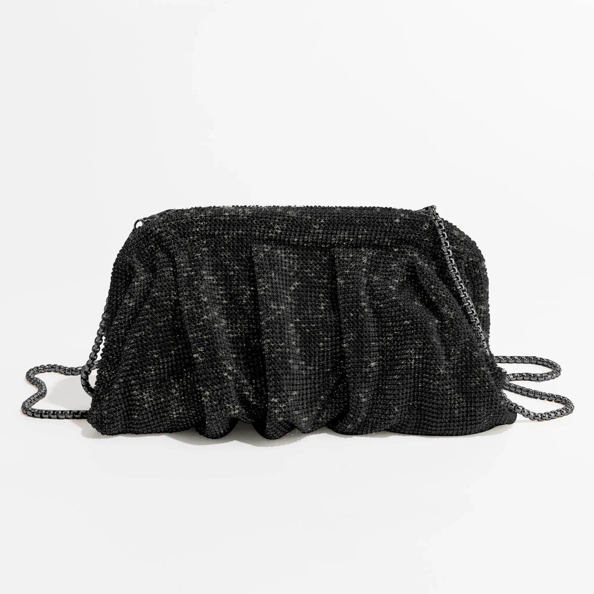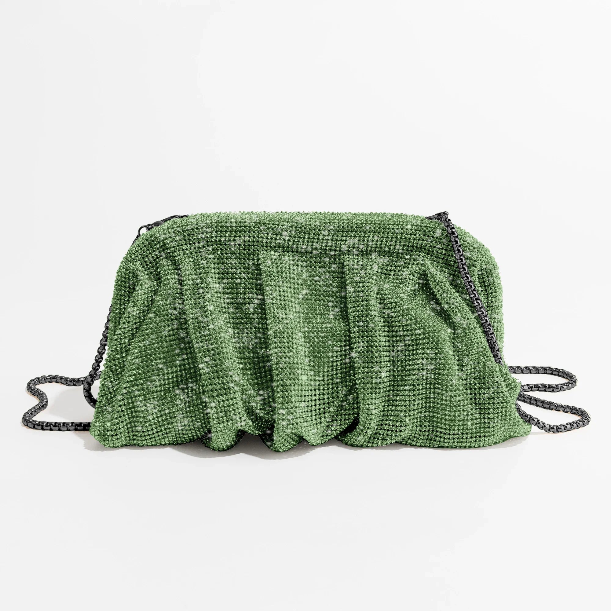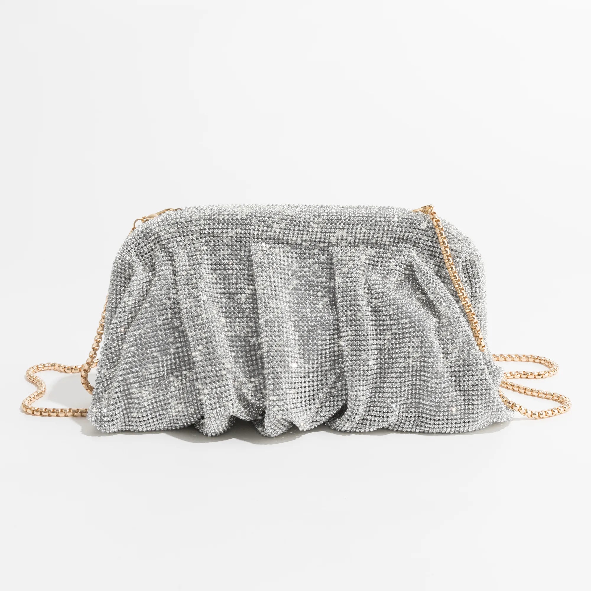 A Bolsa Brilho Cristal é a escolha ideal para quem deseja brilhar com sofisticação. Seu acabamento em cristais aplicados sobre tecido reluzente transforma qualquer look em um verdadeiro destaque.